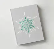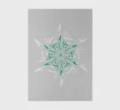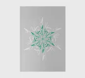 Design invernale: una stella dinamica a sei punte disegnata a mano in bianco e verde su uno sfondo grigio argento.