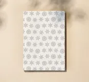 Illustrazioni disegnate a mano di stelle e fiocchi di neve in marrone rossiccio su uno sfondo neutro color crema. Modello minimale in stile nordico e scandinavo, con una disposizione dei motivi volutamente irregolare.