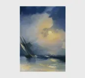 L'opera di Ivan Aivazovsky Tempesta in mare in una notte di luna ritrae l'impressionante potenza della natura. Nuvole scure di tempesta attraversano il cielo mentre le onde si infrangono violentemente sotto un fugace bagliore lunare. La tensione tra il tumulto e la luce cattura sia il pericolo che la bellezza, rendendo questo dipinto un centro d'arte drammatico per gli appassionati di arte marina e di ispirazione nautica inmarine art, romantic seascape, tempesta in mare, nautical wall décor, ocean storm painting, maritime drama, russian marine artist, navy ship in storm, atmospheric seascape, night ocean art, coastal wall décor, nautical gift, sea power painting