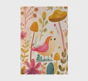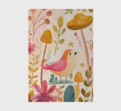 Un dolce uccellino rosa si trova tra funghi dorati e fiori soffici in questo giardino boho da sogno. Dipinta in calde tonalità di acquerello, l'opera d'arte fonde la dolcezza del capriccio e la calma della natura, perfetta per le pareti di asili nido, salotti accoglienti o per chiunque ami il fascino morbido e moderno delle fiabe. Portate un tocco di magia e serenità nel vostro spazio con questa stampa pastello del bosco.