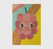 Allegra illustrazione che raffigura un acino d'uva con una faccia simpatica, che irradia uno spirito di squisitezza e allegria.