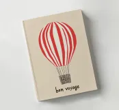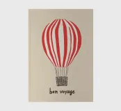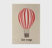 Il motivo mostra la scritta "Bon Voyage" sotto una mongolfiera a strisce bianche e rosse. Il design minimalista su sfondo beige ricorda i poster di viaggio francesi e irradia leggerezza e senso di avventura. Un murale moderno e affascinante per tutti coloro che amano i viaggi e l'avventura.