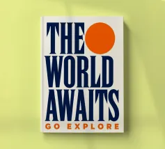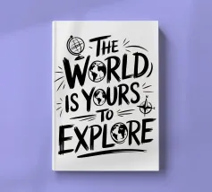 "Il mondo è tuo!" - Un avventuroso motivo estivo nelle vivaci tonalità del rosa, del rosso e dell'arancione. Questo disegno tipografico ispira viaggi ed esplorazioni, mentre il carattere audace incarna libertà e possibilità.