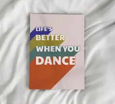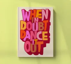 Una stampa tipografica audace ed edificante con la divertente ed energica frase "When in Doubt, Dance It Out". Con un design giocoso di ispirazione retrò e colori vivaci, questa opera d'arte è perfetta per gli amanti della danza, gli appassionati di musica e chiunque creda nel potere del movimento. Un'opera gioiosa per l'arredamento della casa, per gli spazi creativi o come regalo per chi ama ballare. Creato da showmemars