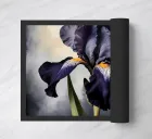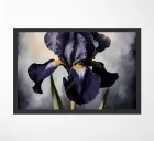 This stunning artwork captures the beauty of a single black iris in all its glory. The artist has masterfully rendered the intricate details of the flower, from the velvety texture of the petals to the delicate veins in the leaves. The rich, dark colors of the iris contrast beautifully with the soft, muted background, creating a sense of drama and elegance. This piece would be a perfect addition to any home or office, adding a touch of sophistication and style.