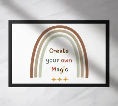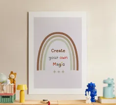 Una spinta gentile per le menti in crescita: Create Your Own Magic unisce l'ottimismo dei colori pastello alla semplicità di ispirazione boho. Questa stampa arcobaleno edificante porta una tavolozza pacata di tappi e terrecotte nelle stanze dei bambini, negli spazi di gioco o negli angoli creativi. Progettata per sembrare moderna e senza tempo, fa parte della nostra serie Boho Affirmations, che incoraggia la positività senza eccessi. La tipografia pulita e minimalista lo rende perfetto per gli interni di ispirazione nordica o montessoriana. Stampato con una morbida texture opaca per mantenere il fascino dei dettagli disegnati a mano.