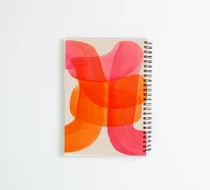 This abstract artwork features sweeping brushstrokes and broad overlapping lines in vibrant orange and pink on a light-coloured background. The dynamic composition creates a feeling of movement and lightness. A modern, minimalist design that brings colour and energy to any room.