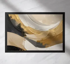 Linee curve nere e oro si snodano in un'eleganza astratta e scultorea.