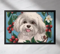 A crowned dog gazes upward at a smiling cloud and radiant sun. The imaginative setting invokes a sense of fantasy, celebration, and warmth beneath the glowing rays.