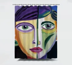 Questa opera d'arte presenta un volto astratto frammentato con linee decise e un mix di colori nero, bianco e giallo. Lo sfondo è pieno di forme geometriche, che si aggiungono al tema astratto generale.