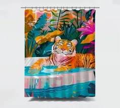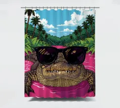 Un'illustrazione stravagante e vivace di un orso polare che vive la sua vita migliore: occhiali da sole, cocktail nella zampa e galleggiante in una piscina per bambini con una mini cascata. Su uno sfondo tropicale rosa caldo, quest'opera d'arte dona un tocco di umorismo e vibrazioni rilassanti a qualsiasi spazio. Perfetto per gli amanti dell'arte eccentrica, dell'estetica retrò e dell'atteggiamento rilassato. Che sia per il salotto, l'ufficio o la casa estiva, questo pezzo garantisce sorrisi.