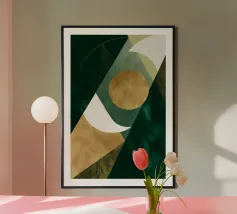 Una giocosa composizione astratta, ricca di audaci forme ispirate alla giungla e di pennellate vivaci. Questo disegno a mano combina verde acqua, blush, senape e menta in un layout gioioso e contemporaneo, perfetto per ravvivare gli interni moderni con un tocco tropicale.