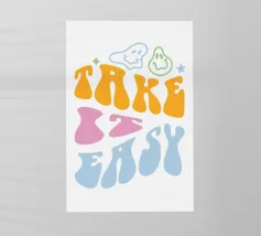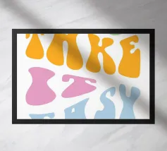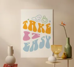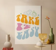 Abbracciate un'atmosfera rilassata con questo giocoso poster digitale che riporta la frase "Take It Easy" in un carattere retrò audace, ondulato e colorato. Le lettere sono un mix di arancione caldo, rosa tenue e blu rilassante, per creare un'estetica vibrante ma tranquilla. Al di sopra del testo, due faccine astratte e fondenti in azzurro e verde aggiungono un'atmosfera stravagante e rilassata. Questa stampa è perfetta per aggiungere un tocco di freschezza e personalità a qualsiasi spazio contemporaneo. Questo poster digitale di alta qualità viene fornito con un'impressionante risoluzione di 7000x5000 pixel e 300 dpi, assicurando un'eccezionale chiarezza e vivacità.