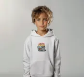 Le nostre felpe unisex con cappuccio per bambini sono realizzate al 100% in cotone biologico.