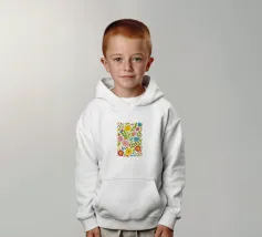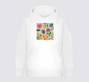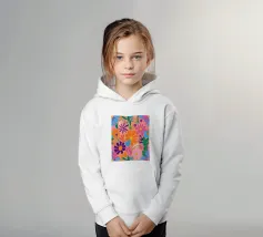 Una bella macchia di fiori selvatici stilizzati e stravaganti è illustrata in un affascinante stile ispirato all'arte popolare, con un delizioso mix di colori e forme che irradiano gioia e bellezza naturale.