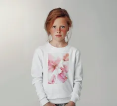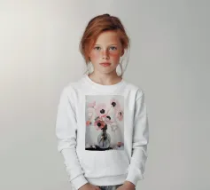 Un delicato pezzo floreale astratto con una forma centrale simile a un fiore in bianco e rosa tenue, con linee più scure simili a inchiostro che si irradiano verso l'esterno, come se svelassero l'anima di un fiore su uno sfondo tenue. Stile Melissa Herrington.