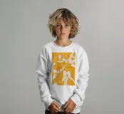 Un'opera d'arte astratta di figure femminili danzanti delineate in nero su uno sfondo giallo vibrante, che esprime ritmo e movimento in uno stile minimalista.