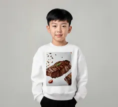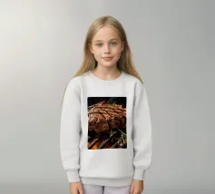 Una bella bistecca alla griglia è adagiata su un piatto bianco, ornato dai segni della griglia. La calda luce del sole mette in risalto i suoi colori ricchi, creando un'atmosfera invitante perfetta per il pranzo.