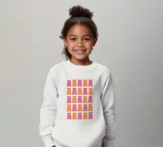 Un'illustrazione vivace e giocosa con un motivo senza soluzione di continuità di orsetti gommosi multicolori su uno sfondo chiaro. Un disegno allegro e nostalgico, perfetto per aggiungere un tocco di colore a qualsiasi spazio. Ideale per gli amanti delle caramelle, l'estetica retrò, l'arredamento dopaminico e gli interni divertenti e stravaganti.