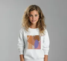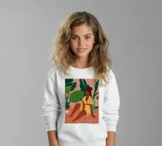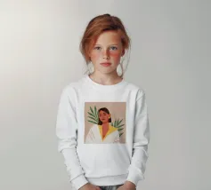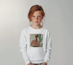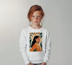 Un bellissimo ritratto stilizzato di due volti di donna di profilo, leggermente sovrapposti. I colori caldi e tenui e lo sfondo a righe creano un'opera d'arte delicata e intima che parla di legami e identità.