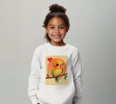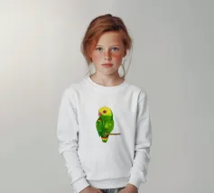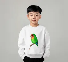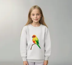 Un'immagine di due inseparabili della pesca appollaiati l'uno accanto all'altro. Elementi floreali aggiunti digitalmente. Sembrano molto rilassati e guardano l'osservatore.