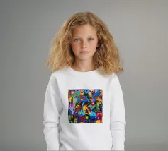 Colori vivaci si fondono in forme dinamiche, creando una composizione gioiosa ed energica. L'assortimento di tonalità offre un'esperienza visiva sorprendente e piena di movimento.