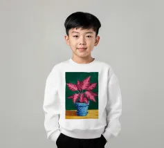 Una pianta di anthurium rosa di grande effetto si trova in un vaso variopinto e decorato su uno sfondo di un vibrante rosa caldo. La composizione è una celebrazione audace ed elegante del colore e delle piante tropicali.