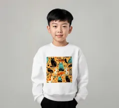 Il design stravagante presenta gatti giocosi di vari colori, ognuno dei quali indossa sciarpe uniche su uno sfondo chiaro. La vivace composizione mette in mostra creatività e fascino.