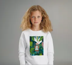 Immersa nel silenzio di un cielo color pesca, galleggia su un'amaca tesa tra le palme, senza peso, mentre il giorno scivola tranquillamente verso il tramonto. Le scimmie si appollaiano e giocano, le fioriture si avvicinano e l'intera giungla ronza con la comodità di non fare assolutamente nulla. È un momento fatto solo di luce del sole, di risate e di quiete, tenuto dolcemente tra le braccia del paradiso.