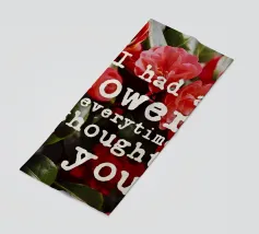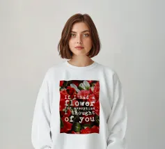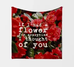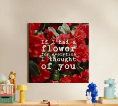 Una poesia visiva di colori ed emozioni: fiori rossi brillanti su uno sfondo verde lussureggiante fanno da sfondo alla scritta bianca "If I had a flower for everytime I thought of you" (Se avessi un fiore per ogni volta che ho pensato a te), una frase che oscilla come un pensiero silenzioso tra nostalgia e affetto. La composizione vive del contrasto tra l'intensità floreale e la chiarezza tipografica. Sembra un momento catturato, personale e universale allo stesso tempo.