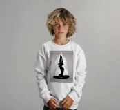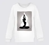 La silhouette di una donna seduta in meditazione con l'energia bianca che scorre intorno a lei. Il contrasto tra luce e buio riflette la consapevolezza e la chiarezza spirituale: perfetto per gli studi di yoga o per le case serene.