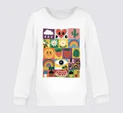 Un motivo allegro e giocoso di varie icone simpatiche e colorate, tra cui arcobaleni, cactus, occhi e frutta. Il mix eclettico crea un disegno divertente, energico e stravagante.