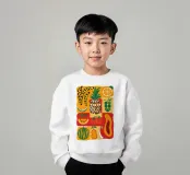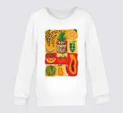 Una composizione vivace e generosa di vari frutti tropicali stilizzati come ananas, papaya e anguria. L'opera d'arte è una celebrazione colorata e gioiosa delle dolci offerte esotiche della natura.