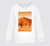 Disegno di viaggio minimalista della Namibia con Deadvlei o Sossusvlei nel Namib. Questo motivo tipico del paesaggio africano è perfetto per tutti i viaggiatori della Namibia che amano le dune di sabbia e i pittoreschi alberi di cammello.