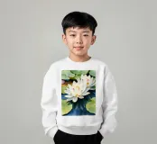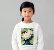 Questo elegante e sereno acquerello cattura la delicata bellezza di due ninfee bianche e rosa che galleggiano pacificamente su uno stagno blu intenso. I petali morbidi e stratificati dei fiori sono messi in risalto dalla calda luce del sole, proiettando ombre delicate che creano un senso di profondità e tranquillità. Le ninfee verdi circondano i fiori e i loro riflessi scintillano sulla superficie dell'acqua calma. Questo pezzo evoca una sensazione di pace e armonia naturale, rendendolo un'aggiunta perfetta a qualsiasi spazio che cerchi un tocco di calma ed eleganza naturale.