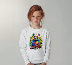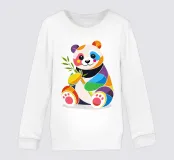 Illustrazione colorata di un simpatico panda con un ramo di bambù. Il motivo giocoso combina cordialità, calma e aree di colore moderne - ideale per i fan dei panda e per i disegni creativi di animali.