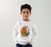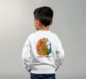 Una lussureggiante illustrazione di un pavone e di un bouquet di fiori rosso-arancio. Una tavolozza calda ed estiva, ideale per creare un'atmosfera botanica e di tendenza nella vostra casa.