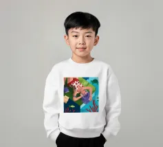 Una composizione astratta presenta una ciotola di fragole in mezzo a un turbinio di forme e motivi organici e colorati, creando un'interpretazione fresca e moderna di un classico dell'estate.
