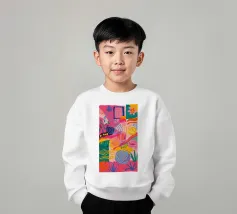 Una vibrante composizione astratta che ricorda una trapunta patchwork, con vari blocchi di colore, motivi geometrici e texture che creano un disegno vivace e tattile.