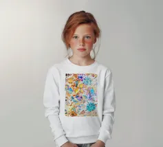 Il dipinto è colorato, con un mix di rosso, blu, giallo e verde. I toni accesi creano un'atmosfera gioiosa ed energica che cattura immediatamente l'attenzione.