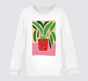 Un'illustrazione semplice ma vivace di una pianta d'appartamento verde e rigogliosa in un vaso rosso brillante e strutturato. I colori vivaci e lo stile pulito ne fanno un pezzo perfetto di arte botanica moderna.