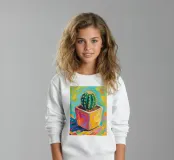 Piccolo cactus in vaso a forma di cubo con pittura fauvismo stile arte