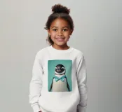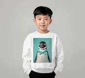 Un'illustrazione divertente ed elegante di un pinguino con papillon in una moderna tavolozza di colori verde acqua. Questa stravagante opera d'arte conferisce un'atmosfera giocosa ed elegante a qualsiasi parete. Perfetto per gli amanti degli animali, per le camere dei bambini, per gli uffici o come regalo unico.