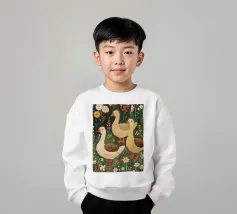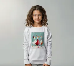 Questa festosa opera d'arte natalizia raffigura quattro giocose oche che indossano cappelli e sciarpe a maglia colorate e che danzano gioiosamente insieme in una foresta innevata di pini. Dipinto a mano in morbido acquerello, cattura lo spirito allegro degli animali del bosco in inverno. Perfetto per tessuti, carte da parati e accoglienti progetti stagionali, questo affascinante disegno aggiunge calore vintage e stravaganza alle tradizioni natalizie. Create da Uta Naumann, le oche portano la magia e l'allegria nostalgica delle feste, rendendole una scelta deliziosa per le celebrazioni festive, l'artigianato invernale e le decorazioni ispirate al bosco.