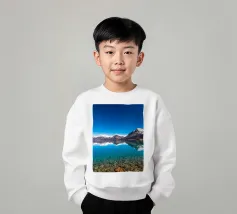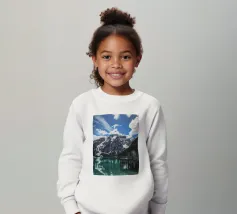 Un cielo azzurro e limpido si riflette perfettamente in un lago sereno circondato da maestose montagne innevate. Questa splendida scena cattura l'essenza della bellezza e della tranquillità della natura.