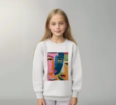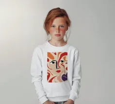 Il ritratto astratto di un volto è creato con linee blu fluide e ondulate su uno sfondo bicolore, dando vita a un'opera d'arte fluida, espressiva e moderna.