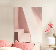 Questo disegno gioca ad arte con le luci e le ombre, che cadono sui semplici gradini di una scala minimalista. I toni caldi del beige e del rosa e le linee pulite creano un'atmosfera rilassante, quasi meditativa. Ideale per ambienti moderni e minimalisti, questo motivo cattura la bellezza della semplicità e aggiunge una delicata eleganza a qualsiasi stanza. Perfetto come murale o su accessori per la casa, porta in casa vostra un'architettura sottile e forme armoniose.