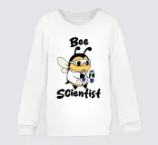 Una simpatica ape in camice e occhiali tiene in mano due provette piene di pozioni colorate. L'illustrazione gioca sul gioco di parole "Bee Scientist", unendo scienza e simpatia in un'unica immagine. Perfetto per chi ama la biologia, la chimica o semplicemente le api con un look da scienziato!
