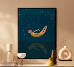 Questo disegno mostra una donna dai capelli viola che si sdraia con disinvoltura su una poltrona giallo senape: rilassata, sicura di sé, completamente immersa nel momento. Il contrasto tra lo sfondo scuro, il pavimento rosa e la poltrona di velluto giallo crea un linguaggio visivo potente e moderno dal fascino retrò. "Velvet Chair" è sinonimo di calma, compostezza e un tocco di nonchalance - ispirata alla vita reale, stilizzata in un chiaro look bujaboom. Perfetta per il salotto, lo studio o l'atelier, per tutti coloro che amano l'arte con carattere e attitudine.