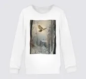 In una tranquilla foresta innevata, un gufo plana silenzioso su una capanna solitaria. I colori tenui e la luce soffusa conferiscono alla scena un'atmosfera misteriosa e pacifica. Questo suggestivo dipinto invernale cattura la bellezza della natura e la magia della solitudine invernale, simbolo di tranquillità e contemplazione.